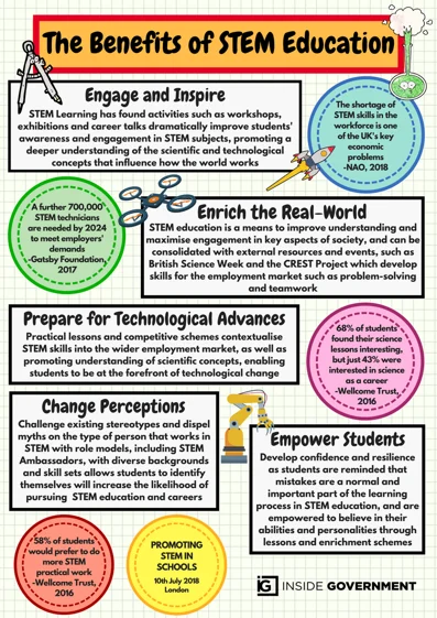 The integration of STEM (Science, Technology, Engineering, and Math) in education offers numerous benefits for students, including improved problem-solving skills, enhanced critical thinking, and increased creativity. STEM education also fosters a deeper understanding of the world and its complexities, preparing students for an increasingly technology-driven society. Additionally, STEM education can lead to improved academic performance, increased career opportunities, and higher earning potential, as well as a stronger foundation for lifelong learning and innovation. By incorporating STEM into the curriculum, educators can inspire students to become curious, analytical, and innovative thinkers, equipped to tackle the challenges of the 21st century.