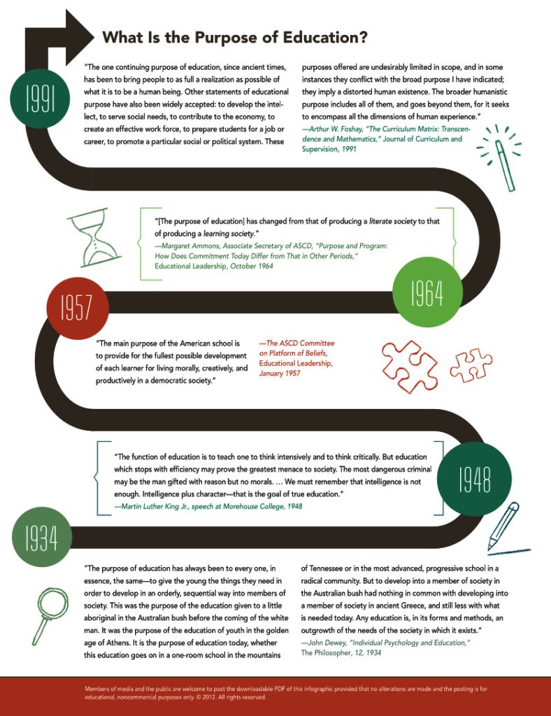 What is the purpose of time, an infographic that shows the purpose of education from from the 1930’s till 1991.